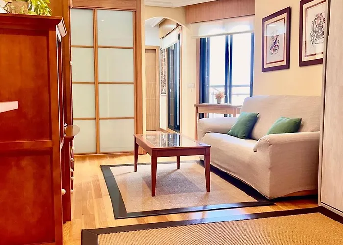 Apartmán Apartmán Apartamento Centrico Con Garaje nabízí kompletní kuchyni i pokoje s přístrojem na přípravu kávy a čaje, televizí, TV s plochou obrazovkou se satelitními kanály. Apartmán je 20 minut chůze od Pevnost Castro a 10 minut jízdy od Kaple Nosa Señora da Guía.